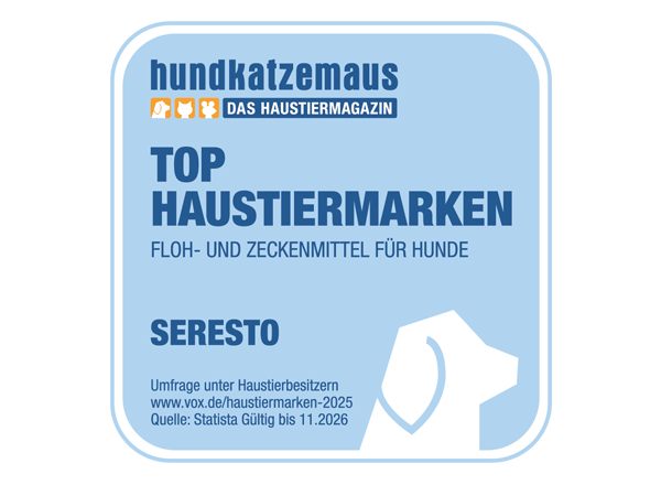 Seresto® wurde zum dritten Mal in Folge durch "hundkatzemaus – das Haustiermagazin" - in Kooperation mit dem weltweit tätigen Marktforschungsinstitut Statista als eine der "Top Haustiermarken Deutschlands 2025" ausgezeichnet.**