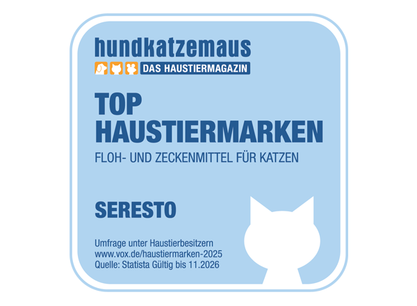 Seresto® wurde zum dritten Mal in Folge durch "hundkatzemaus – das Haustiermagazin" - in Kooperation mit dem weltweit tätigen Marktforschungsinstitut Statista als eine der "Top Haustiermarken Deutschlands 2025" ausgezeichnet.**