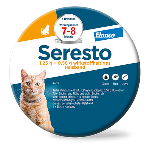 Das Seresto® Halsband für Katzen wehrt und tötet Zecken effektiv ab und tötet zusätzlich auch Flöhe – ganz einfach durch Kontakt mit dem behandelten Tier. Das bedeutet, Zecken müssen Ihre Katze erst gar nicht stechen, um wirksam abgetötet zu werden. So wird indirekt das Risiko für die Übertragung bestimmter Erreger durch Zeckenstiche verringert.